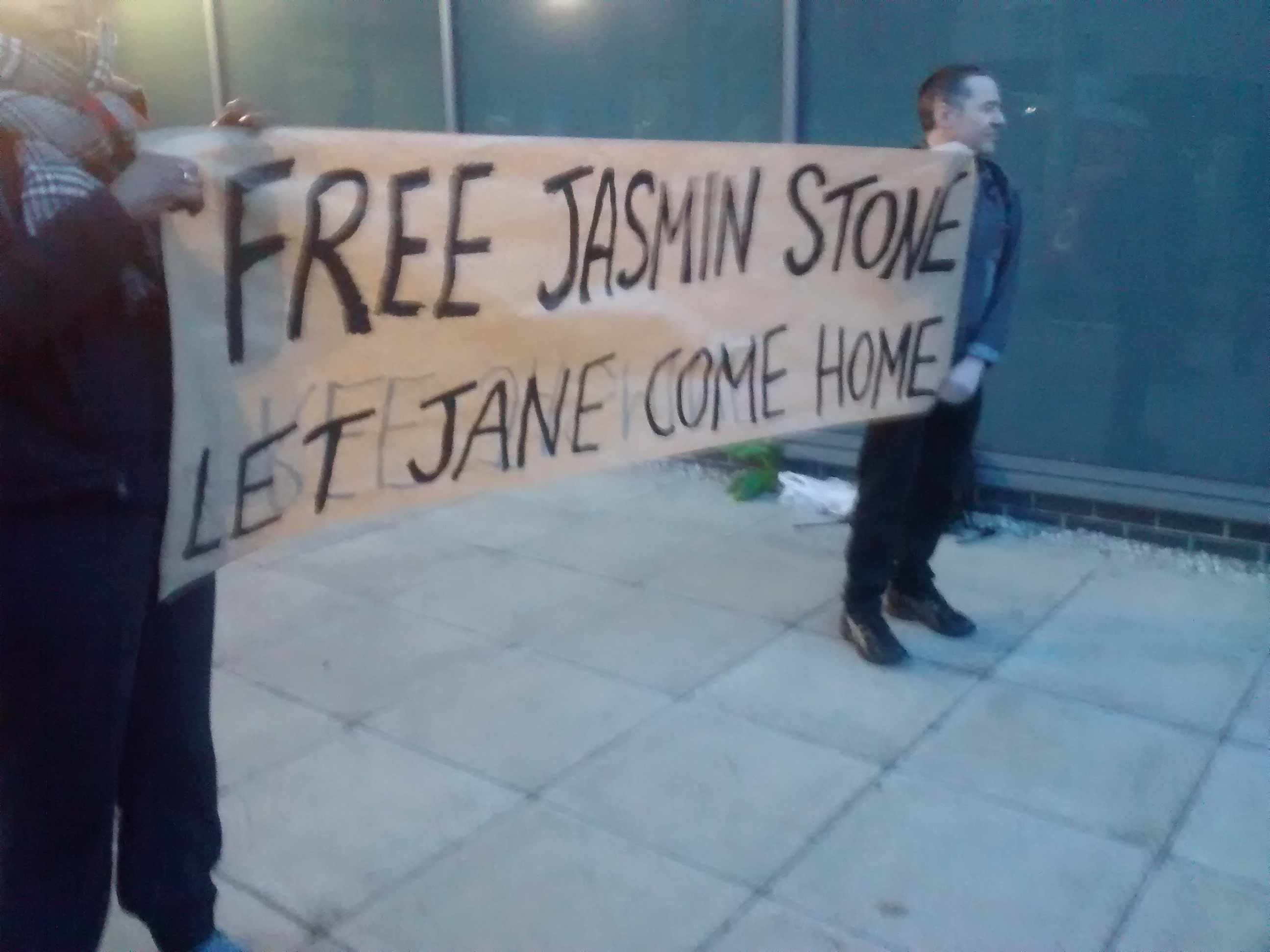 IMG_20150413_200504980 Published on May 16, 2015 in Victory! No charges to be brought against Jasmin Stone of Focus E15 campaign.Full resolution (2592 × 1944) A banner was unfurled outside the custody suite, stating our demands Fee Jasmin Stone