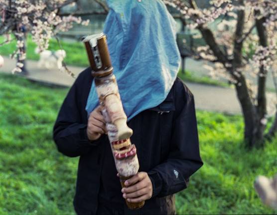 Figure 3 The Market forces lurk around the park. Mark-It made from an old chair leg found in Bethnal Green. (analogue photo C. Walker)